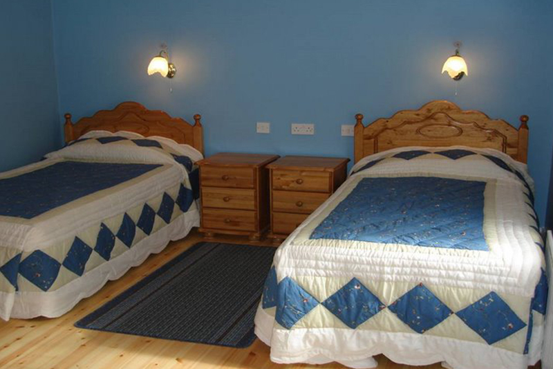 Our self-catering cottage has 3 ensuite bedrooms, one on the ground floor, with a double bed and 2 on the first floor. One of the rooms on the first floor has 2 single beds and the other room has a double bed and a single bed. The cottage sleeps up to 7 guests. There is a kitchen / lounge area on the ground floor.