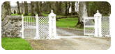 At the foot of the avenue there stands magnificant cast iron gates and pillars; white painted. During the Second World War, metals as well as clothes and food were scarce. Attempts were made to seize the long white gates, but these failed. So it can be said " The White Gates of Dundrum," which today are a landmark, survived a world war.